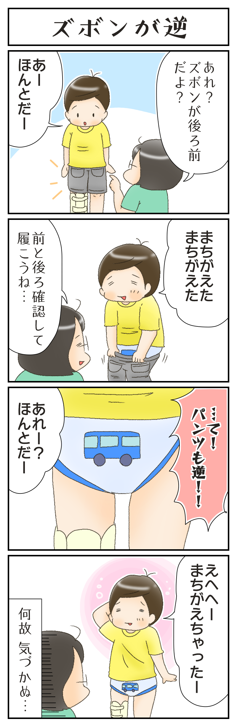 ズボンが逆だと思いきや…。 2018年09月10日 いつもありがとうございます!☆★はじめましての方はこちら★☆ たこ焼き機で肉巻きおにぎり作りました。凄く美味しかったです。どーも、メグッペです。………息子の事に関しては心配が尽きない…履き心地悪くないのかな…?ん?むしろこっちが前なのか??(混乱)…洋服を後ろ前に着るってあまり良い事ではないからやめて欲しいな…。では、また! …… ↓コノビーさんで記事かいてます↓よろしかったら登録お願いします ……… ランキング参加中です 育児絵日記ランキング 「息子 5歳」カテゴリの最新記事 < 前の記事